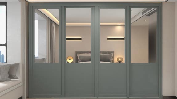Renkli Camlı Kayar Kapaklı Giysi Dolabı